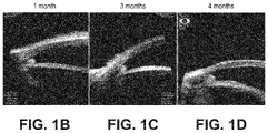 - FIGS. 1 B- 1 D are ultrasound images of a hydrogel depot in the anterior chamber of the eye, in the iridocorneal angle, in a beagle, at 1 month ( 1 B), 3 months ( 1 C) and 4 months ( 1 D) post-introduction;