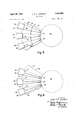 As shown, the ribs 20, 21 extend radially of the plate structure 416 between its inner and outer edges, and each rib is in the form of a iiat, generally wedge-shaped plate. The relatively narrow inner end portions 22 of the wedge-shaped ribs 20, 21 are spaced around the central opening 19 and the relatively wider outer end portions 23 of the ribs are spaced around the outer edge 17 of the plate structure 16. If desired, the outer end portions 23 may project beyond the outer edge :17 of the plate structure 16 in order to provide support for large size coils. Similarly, the inner end portions 22 may project beyond the inner edge `18 of the plate structure. It is to be understood that the shape, size and positioning of the ribs 20, 21 can be varied and that the illustrated rib formations are not limiting of the present invention. The ribs can be angularly olf-set with respect to radial lines of the plate structure, and, for example, may extend along lines which are tangent to the circular inner edge 18. As is well understood in the art, the ribs 20, 21 may be formed by elements having a uniform or varying width which extend along either straight or curved lines.