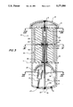 As noted, filter cartridge 20 occupies most of the upper two-thirds or so of the housing interior. The cartridge embodiment shown here is of preferred "dual" type, comprising a pair of similar cylindrical halves, each having a body composed of numerous layers of tissue 21 wrapped tightly onto and around rigid hollow core 24 and extending to dense fibrous peripheral jacket 27. The respective filter halves are separated midway of the axially longitudinal extent of the cartridge by wide-mesh horizontal screen 26 extending radially outward from cartridge bore 25 to jacket 27 of each. Flanking the axially adjacent portion of the screen above and below are adjacent end caps 24 and 28, each with a flat horizontal flange open in line with the cartridge bore, contiguous with the screen and having a stubby integral coaxial flange indented into the cartridge material, maintaining the screen flat and discouraging deformation of the cartridge from possibly excessive pressure radially inward.