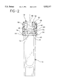 - FIG. 2 is a side elevational view of container 12 with cap 14 secured thereto, and shows the interaction between container 12 and cap 14.
