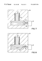 FIG. 9 is a cross-sectional view showing a portion of a mold and a piston that is positioned having its end surface spaced from the end surface of the mold cavity during the pressure casting process;