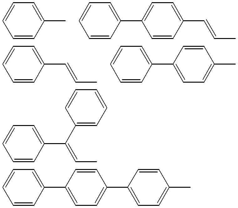 R can be identical or different and have the same meanings as K, L, M, Q or is —H, a linear or branched alkyl, alkoxy or ester group having from 1 to 22, preferably from 1 to 15, particularly preferably from 1 to 12, carbon atoms, —CN, —NO2, —NR2R3, —Ar or —O—Ar;