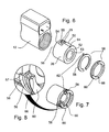 FIG. 2 is an exploded isometric view of an objective lens assembly showing an objective lens housing, the objective lens holder formed with integrated first eccentric element, a second eccentric element and an eccentric seal, according to the present invention;