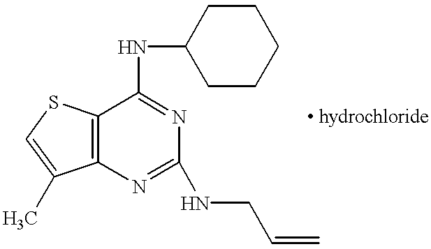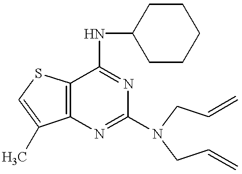 - NVEUMMHFHDLWRB-UHFFFAOYSA-N C=CCN(CC=C)C1=NC2=C(SC=C2C)C(NC2CCCCC2)=N1 Chemical compound C=CCN(CC=C)C1=NC2=C(SC=C2C)C(NC2CCCCC2)=N1 NVEUMMHFHDLWRB-UHFFFAOYSA-N 0.000 description 1