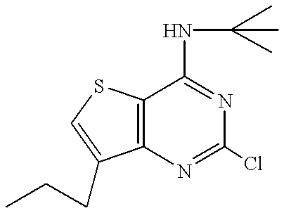- BWVVGAHHFXLBKF-UHFFFAOYSA-N CC1=CSC2=C1N=C(Cl)N=C2NC(C)(C)C Chemical compound CC1=CSC2=C1N=C(Cl)N=C2NC(C)(C)C BWVVGAHHFXLBKF-UHFFFAOYSA-N 0.000 description 2