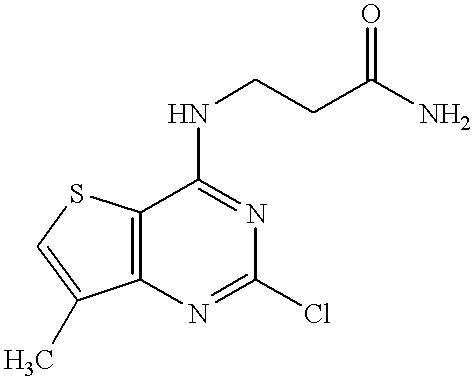 - ANVSTDBZUILEKA-UHFFFAOYSA-N CCNC1=NC(Cl)=NC2=C1SC=C2C Chemical compound CCNC1=NC(Cl)=NC2=C1SC=C2C ANVSTDBZUILEKA-UHFFFAOYSA-N 0.000 description 6