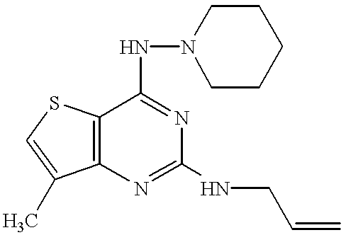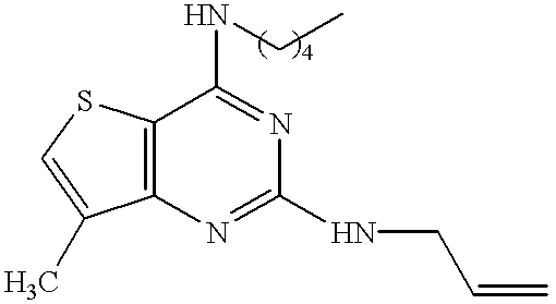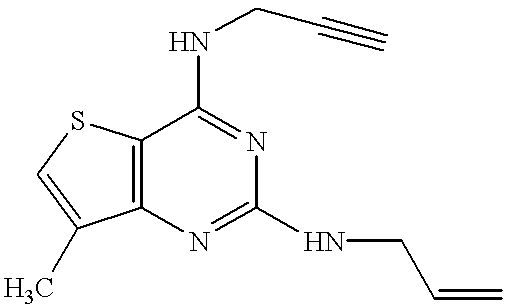 - SXWHFRYVAWIEQN-UHFFFAOYSA-N C=CCNC1=NC2=C(SC=C2C)C(NCC)=N1 Chemical compound C=CCNC1=NC2=C(SC=C2C)C(NCC)=N1 SXWHFRYVAWIEQN-UHFFFAOYSA-N 0.000 description 6