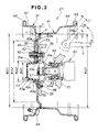 - the motorized buggy 10 comprises a handlebar 12 rotatably mounted to a vehicle body or chassis 11 , front wheel assemblies 13 , 13 steerably connected to the handlebar 12 via a steering gear device (not shown), a driver seat 14 mounted on an upper part of the vehicle body 11 , a power unit 15 comprised of an engine and a transmission disposed under the seat 14 , and rear wheel assemblies 16 , 16 driven by the power unit 15 .