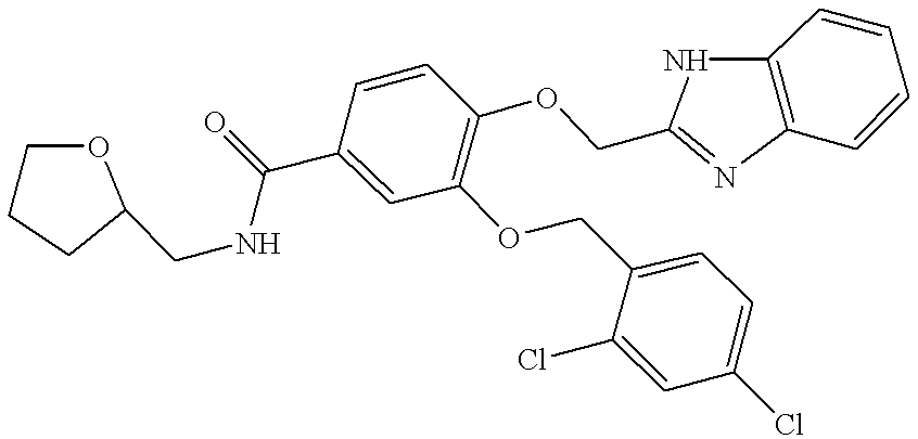 A solution of 5.0 g ethyl-3,4-dihydroxybenzoate, 3.8 ml 2,4-dichlorobenzylchloride and 7.58 g potassium carbonate in 50 ml anhydrous N,N-dimethylformamide was stirred at room temperature for 24 hours before partitioning with 500 ml ethyl acetate and 500 ml brine. The organic layer was dried with 10 g sodium sulfate and concentrated. Purification by silica gel chromatography using 5-20% ethyl acetate in hexanes afforded 1.0 g of I.
