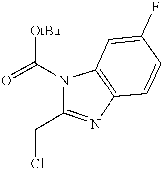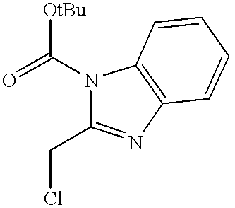 3.0 g of 2-chloromethylbenzimidazole and 3.0 ml trimethylsilyl ethoxymethyl chloride was added to a solution of 6 ml triethylamine in 20 ml dichloromethane. The reaction stirred at room temperature for 24 hours before partitioning with 250 ml ethyl acetate and 2×200 ml brine. The organic layer was dried with 5 g magnesium sulfate and concentrated. Purification by silica gel chromatography using 20% ethyl acetate in hexanes gave 1.23 g of II as a while solid.
