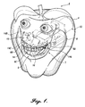 - FIG. 1 is a perspective view of a character including a hollow head in the form of an apple, which is capable of forming facial expressions in accordance with the present invention