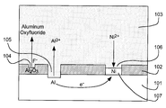 - FIG. 1 is a cross sectional view of a highly reactive metal substrate 101 with a thick surface oxide layer 102 , which tends to increase in thickness with time under ambient or processing conditions.