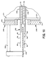 FIG. 10 illustrates an enlarged section view of a portion of a training pant at a position within the folding section shown in FIGS. 2, 8 and 9.