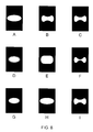- the panel may be programmed to form a pattern so that the incident activating light falls mainly on the thicker center portion of the lens (See FIG. 7, patterns A, B, C, D, F, H, and I).