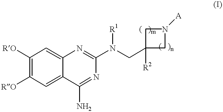 Alpha-1A, alpha-1B, and alpha-1D adrenoceptor transfected CHO-K1 cells, prepared using the methods described in Chang et al., FEBS Lett 1998, 422, 279-283, were grown to confluence in T-162 tissue culture flasks in Ham's F-12 culture medium supplemented with 10% fetal bovine serum, geneticin (150 μg/ml) and streptomycin/penicillin (30 μg/mL/30 μg/ml) at 370 in 7% CO2. Cells were harvested by incubating with phosphate-buffered saline (PBS) containing 30 μEDTA for 5-10 min at 37° C. Cells were pelleted by contrifuging at 500×g for 5 min, the pelleted cells were homogenized (Polytron homogenizer) in 10 vols (w/v) of 50 mM Tris, 1 mM EDTA, (homogenisation buffer, pH 7.4 at 4° C.). The homogenate was centrifuged at 45,000×g for 20 min. The pellet was resuspended in 50 mM Tris buffer (pH 7.4 at 4° C.), aliquoted, frozen, and stored at −80° C. for further use.