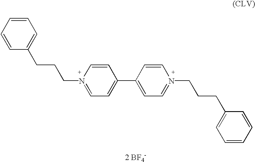 For construction b), viologens have been described as electrochromic substances. These devices are not self-extinguishing, so the image produced remains after the electric potential has been switched off and can be extinguished again only by reversing the polarity. Such devices are not particularly stable and do not allow a large number of switching cycles.