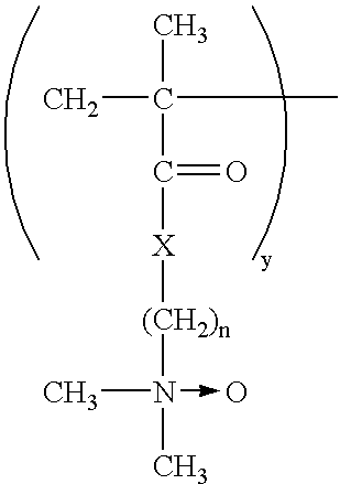 A key aspect of this calculation is the pKa measurement for any protonatable species which will result in a cationic charge on the heteroatom. Since the pKa is dependent on the polymer structure and various monomers present, this must be measure to determine the percentage of protonatable sites to count as a function of the desired wash pH. This is an easy exercise for one skilled in the art. Based on this calculation, the percent of cationic charge is independent of polymer molecular weight.