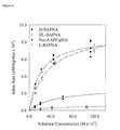 - FIG. 1 shows the kinetics of the hydrolysis of DL-BAPNA catalyzed by non-imprinted silica particles ( ⁇ ) and silica particles surface-imprinted with 10% ( ⁇ ), 20% ( ⁇ ), and 40% ( ⁇ ) N- ⁇ -decyl-L-phenylalanine-2-aminopyridine. All particles contain 5 wt % (total silica) of a mixture of PEDA, IPTS, and CTES.