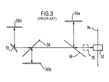- a pair of splitter/combiner mirrors 36 , 38 Positioned within the light path of the arrays 30 a, 30 b, 30 c are a pair of splitter/combiner mirrors 36 , 38 which are at an inclination, rotated about the vertical axis such as to reflect portions of the incident beam to the arrays 30 a, 30 b.