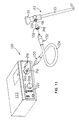 - FIG. 25 is a cutaway and exploded view of a fiber optic scope-sensing cable of this invention with magnetically actuated scope-sensing switches in the scope end plug and the complementary adapter with which this cable is employed;
