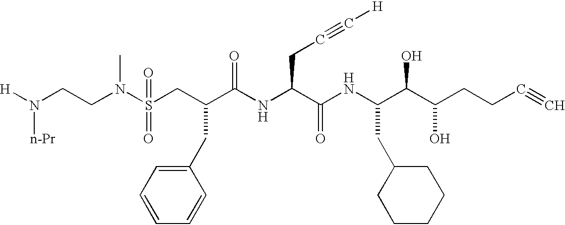 | US5268391A (en) | Propargyl-terminated cycloalkylalkyl-P2-site substituted aryl/alkylsulfonyl-terminated alanine amino-diol compounds for treatment of hypertension | |