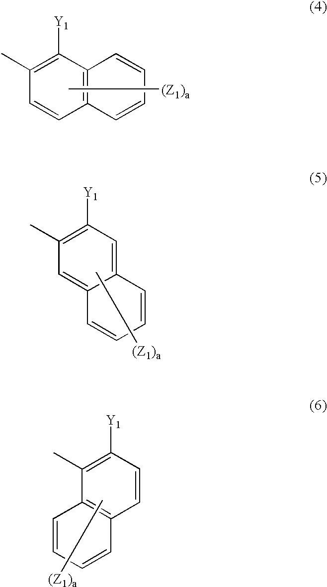 1 represents naphthyl group represented by any one of the following general formulae (4) to (6):