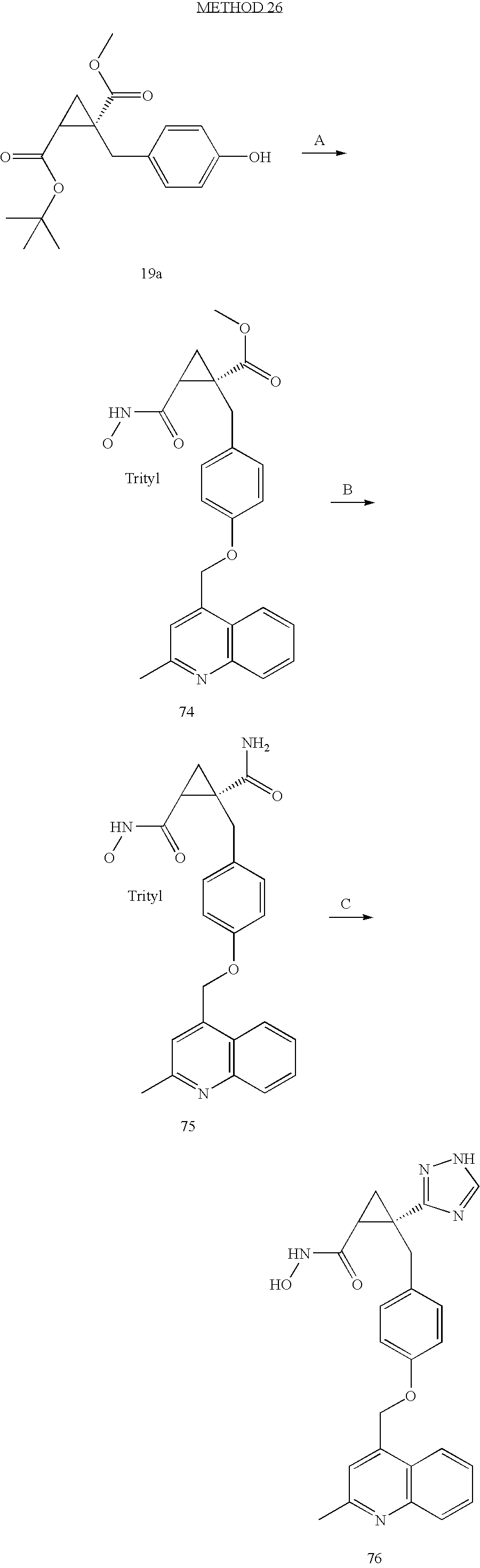 - KRBVUVIXHGMDKX-ZFQPXVTNSA-N COC(=O)[C@H](CC1=CC=CC=C1)NC(=O)[C@@]1(CC2=CC=C(OCC3=C4C=CC=CC4=NC(C)=C3)C=C2)C[C@@H]1C(=O)NO Chemical compound COC(=O)[C@H](CC1=CC=CC=C1)NC(=O)[C@@]1(CC2=CC=C(OCC3=C4C=CC=CC4=NC(C)=C3)C=C2)C[C@@H]1C(=O)NO KRBVUVIXHGMDKX-ZFQPXVTNSA-N 0.000 description 3