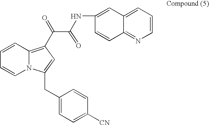 - NSFYQVSFMUVKQZ-UHFFFAOYSA-N 4-(indolizin-3-ylmethyl)benzonitrile Chemical compound C1=CC(C#N)=CC=C1CC1=CC=C2N1C=CC=C2 NSFYQVSFMUVKQZ-UHFFFAOYSA-N 0.000 description 6