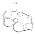 As exemplified in FIG. 2 which shows a cross sectional view taken along an axial direction of a poly-V pulley 5 of the alternator on which the belt 1 is put, the poly-V belt 1 a has three projections 10 engaged with the three grooves 30 of each of the poly-V pulleys 4 to 7 on a width side near to each main body of the engine auxiliary units. On the other hand, the poly-V belt 1 b has three projections 10 engaged with the three grooves 30 of each of the poly-V pulleys 4 to 7 on a width side far from each main body of the engine auxiliary units. After putting the two pieces of the poly- V belts 1 a and 1 b on the respective poly-V pulleys 4 to 7 of the engine auxiliary units and the idling pulley 9, tensions of the two pieces of the poly- V belts 1 a and 1 b are adequately regulated by the automatic tension adjusting poly-V pulley 8.