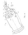 - the patent is concerned with improvements in the strength and durability of the liner by using a large forging with several joggles and scallop to ease thermal stress ( 12 ). See FIG. 1 .