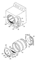 FIGS. 3 and 4 illustrate perspective views each seen from an inside of a drum showing the sensor and the air outlet grill in FIG. 2 respectively mounted to a front bulkhead;
