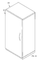 FIG. 25 is a perspective view of a second modified cabinet, similar to the cabinet of FIG. 17, but including a thick “storage” door;
