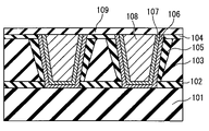 - a first SiCN film 202 is formed as a barrier insulating film on an insulating film 201 formed on a semiconductor substrate that includes transistors.