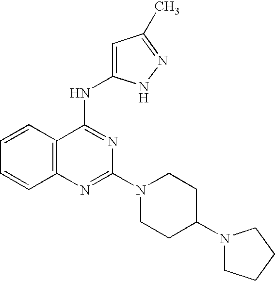 The following compounds were shown to have Ki values less than 0.1 μM for Aurora-2: compounds II-33, II-34, II-36, II-37, II-40, II-41, II-55, III-7, III-9, III-37, III-38, III-39, III-40, III-41, III-42, III-44, III-45, III-46, III-47, III-48, III-49, III-50, III-51, III-52, III-53, III-54, III-55, III-56, III-57, III-59, III-60, III-61, III-63, III-30, III-65, III-66, III-67, III-70, III-31, III-76, III-77, III-78, III-80, III-32, III-33, III-34, III-106, III-108, III-109, III-110, III-111, III-112, III-114, III-35, III-115, III-116, III-117, III-118, III-119, III-120, III-121, IV-7, IV-30, IV-32, and IV-34.