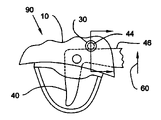 - FIG. 5A is an enlarged cross-sectional view of FIG. 5 showing trigger guard 70 showing trigger 40 in a free unused position with moving plate 81 and stationary plate 80 retained on the trigger guard 70 .