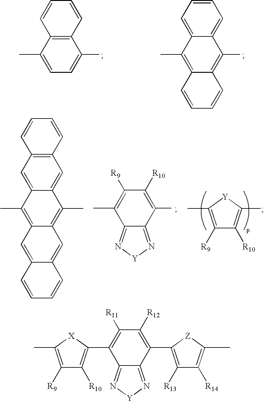 - H10K85/111—Organic polymers or oligomers comprising aromatic, heteroaromatic, or aryl chains, e.g. polyaniline, polyphenylene or polyphenylene vinylene