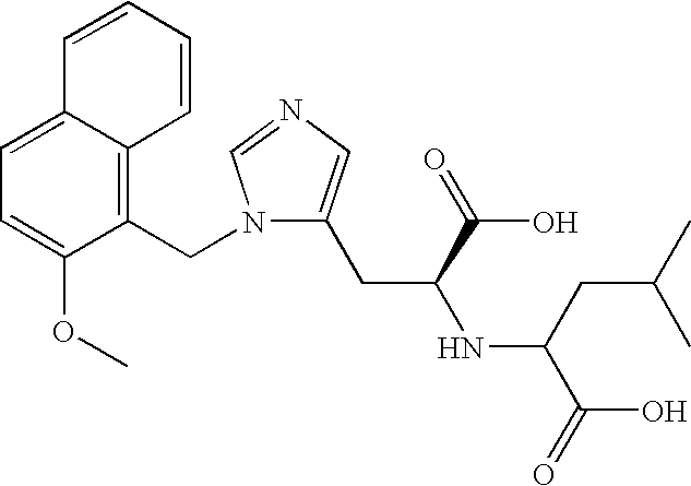 - NTCCRGGIJNDEAB-IRXDYDNUSA-N MLN-4760 Chemical compound CC(C)C[C@@H](C(O)=O)N[C@H](C(O)=O)CC1=CN=CN1CC1=CC(Cl)=CC(Cl)=C1 NTCCRGGIJNDEAB-IRXDYDNUSA-N 0.000 claims description 7