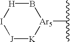 - ii) B, H, I, J and K together with the Ar5 form a ring containing at least one amide residue having the formula