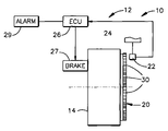 - This invention relates in general to determining the direction of travel of a wheeled vehicle. Such a determination can be used to activate a back-up alarm or other feature of the vehicle. More particularly, this invention relates to an anti-lock braking system that can also be used to help determine the forward or reverse direction of a movement of a vehicle.