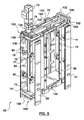 In further detail, a first and a second driven belt 201, 203 is provided along each longitudinal edge of the upper frame plate 230, and wherein each of the first and the second driven belts 201, 203 are longitudinally aligned and extend across substantially one half of the length of the upper frame plate 230. Furthermore, the first and the second driven belts 201, 203 each include a forward and a rear path segment 202, 204 that are arranged to be parallel and closely spaced to a front face of the cavity plate assembly 63.