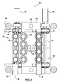 The driving belt 206 connects the driving idler gears 214 adjacent the first and the second cavity plate assemblies 63 with the driving gear 210 of the driving shaft 73. The path of belt 206 also preferably extends around a pair of auxiliary idlers 218, located near the center of the upper frame plate 230, to ensure adequate circumferential engagement of the belt 206 with the driving gear 210.