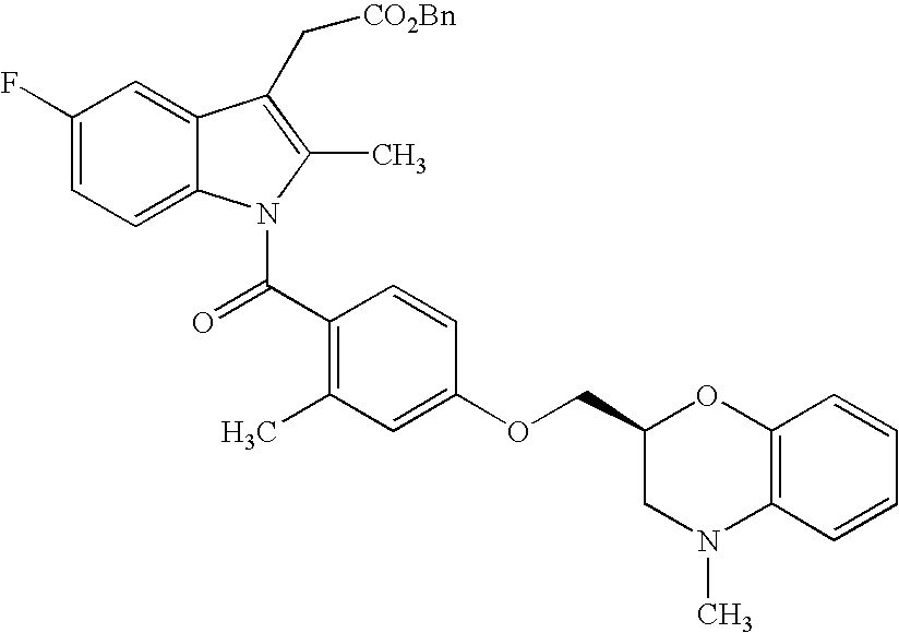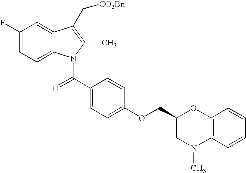 - DZNHBNOMZNIXPY-UHFFFAOYSA-N 2-[5-methoxy-2-methyl-1-(4-phenylmethoxybenzoyl)indol-3-yl]acetic acid Chemical compound CC1=C(CC(O)=O)C2=CC(OC)=CC=C2N1C(=O)C(C=C1)=CC=C1OCC1=CC=CC=C1 DZNHBNOMZNIXPY-UHFFFAOYSA-N 0.000 claims description 3