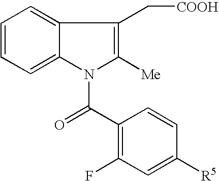 - XXCGFUNMTYOJJM-UHFFFAOYSA-N 2-[5-methoxy-2-methyl-1-[4-(3-phenylpropoxy)benzoyl]indol-3-yl]acetic acid Chemical compound CC1=C(CC(O)=O)C2=CC(OC)=CC=C2N1C(=O)C(C=C1)=CC=C1OCCCC1=CC=CC=C1 XXCGFUNMTYOJJM-UHFFFAOYSA-N 0.000 claims description 3