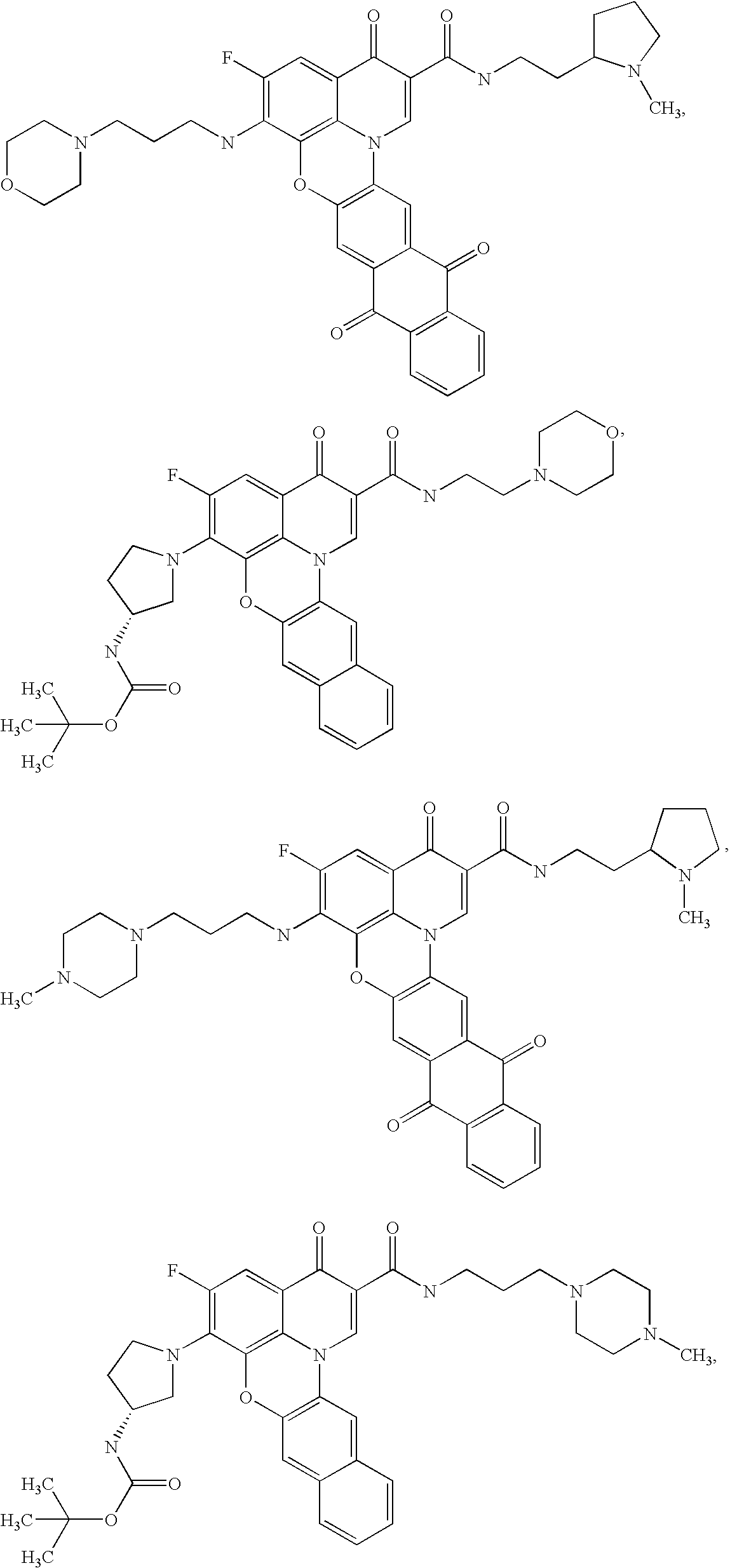 - IQAFTCBPQCXQFW-UHFFFAOYSA-N CN1CCN(CCCNC(=O)C2=CN3C4=C(C=C5C(=O)C6=C(C=CC=C6)C(=O)C5=C4)OC4=C3C(=CC(F)=C4NCCN3CCCC3)C2=O)CC1 Chemical compound CN1CCN(CCCNC(=O)C2=CN3C4=C(C=C5C(=O)C6=C(C=CC=C6)C(=O)C5=C4)OC4=C3C(=CC(F)=C4NCCN3CCCC3)C2=O)CC1 IQAFTCBPQCXQFW-UHFFFAOYSA-N 0.000 description 2