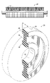 In this embodiment, the main portion 26 is centered along the thickness T of the rim 22 and the center portion 28, thus forming an “I-beam” profile along a radius of disc 20. However, it is possible to provide a disc having one or more tapered or curved surfaces between circumferential surface 22 and inner surface 30, and such variations can still be said to define a rim (even of negligible size) and main portion. Although the sides of main portion 26 are generally smooth and parallel as shown in FIG. 3, there may further be provided vanes, openings, or other variations to the basic shape of main portion 26; in a practical embodiment, however, at least a significant portion of main portion 26 has an effective thickness less than T.