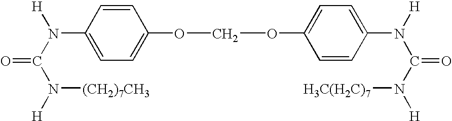 - JSCLOGSMRIZBND-UHFFFAOYSA-N [H]N(CCCCCCCC)C(=O)N([H])C1=CC=C(OCCCCCOC2=CC=C(N([H])C(=O)N([H])CCCCCCCC)C=C2)C=C1 Chemical compound [H]N(CCCCCCCC)C(=O)N([H])C1=CC=C(OCCCCCOC2=CC=C(N([H])C(=O)N([H])CCCCCCCC)C=C2)C=C1 JSCLOGSMRIZBND-UHFFFAOYSA-N 0.000 description 1