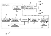 - the ACSS system further includes a processor that generates a test signal represented by a temporal maximum length sequence (MLS) and supplies the test signal as part of the electric input signal to the electro-acoustic converter, and an acousto-electric converter, such as a microphone, that receives the sound signal in a listening environment and supplies a received electric signal to the processor.