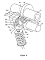 FIG. 11 is a rear perspective view of the third embodiment in which the camshaft and stationary cam of the third embodiment are removed.