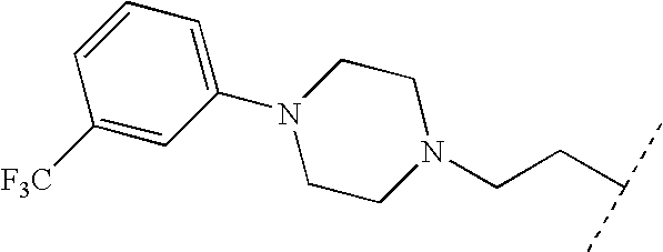 - POYRHZWRXWAIIE-UHFFFAOYSA-N CC(C)CCN1CCN(C2=CC=CC(C(F)(F)F)=C2)CC1 Chemical compound CC(C)CCN1CCN(C2=CC=CC(C(F)(F)F)=C2)CC1 POYRHZWRXWAIIE-UHFFFAOYSA-N 0.000 description 6