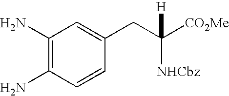 Isolated Tissue Baths. The vessels were cleaned of connective tissues and cut into cylindrical segments of 4–5 mm in length. The vessels were then mounted in tissue baths between two stainless steel hooks; one of which is fixed and the other of which was connected to a force displacement transducer. The vessel tension was continuously recorded using a data acquisition system (Powerlab, ADInstruments, Mountain View, Calif.) connected to the transducer. The tissue baths containing Krebs buffer and mounted vessels were temperature (37° C.) and pH (7.4) controlled with continuous bubbling of carbogen. The artery segments were allowed to equilibrate for about 30–45 min until a stable resting tone was achieved. Prior to the assay, vessels were primed (conditioned) with 100 mM KCl and subsequently washed. The vessels were pre-contracted with 10 mM KCl and fully dilated with 1 nM hCGRP. Concentration-response curves to CGRP-receptor antagonists were performed by the cumulative addition of drugs in half log units in fully dilated vessels. At each concentration, the effects of the drugs were expressed as % reversal of CGRP-induced relaxation in each vessel. The actual assay and data analysis were performed for each vessel individually, fitting the concentration-response data to a four parameter logistic function by non-linear regression analysis, to estimate the EC50 values. A summary of results is provided in Table 3.
